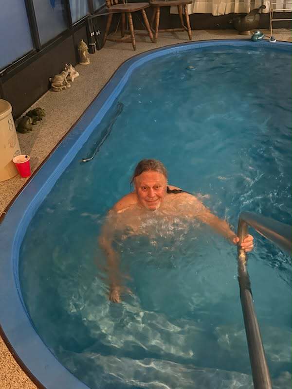 It was -8* when this picture was taken of the pool on Jan. 2026. Pool water was 95*. Leaded Glass Door Custon Made in California to the Pool Room.